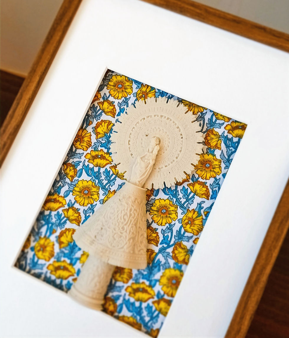 Virgen redonda en marco y estampado
